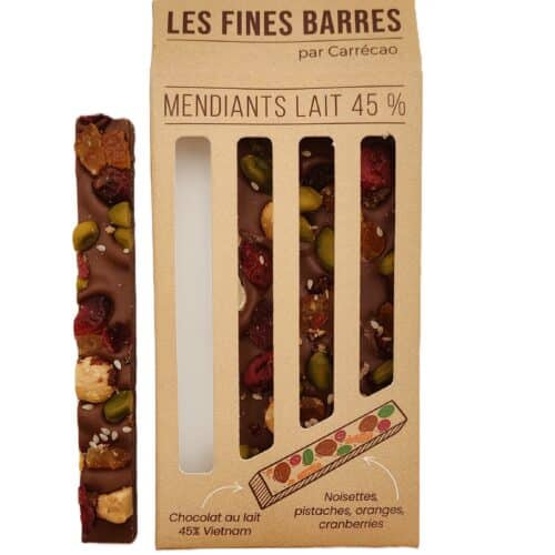 Découvrez, dans la gamme "Les Fines Barres", les barres mendiants. Des barres chocolatées artisanale...