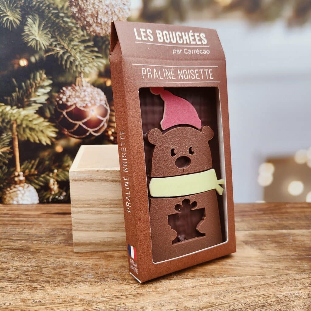 Craquez pour notre Ours de Noël garni de praliné noisette croustillant 🐻 80 grammes de bonheur régressif !