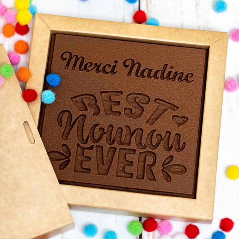 Tablette de chocolat à personnaliser, pour remercier la nounou qui vous accompagne toute l’année !
